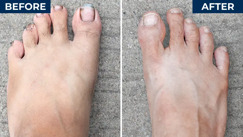 I've grown with yellowish, severe deformity and unhealthy toenails. The ingrown nail down to the underneath skin, like a staple stitching into my flesh. Every time trimming my toe nails, I was left with excruciating and hellish pain (the pinching of a nerve that radiates pain all the way through my toes to my entire leg).