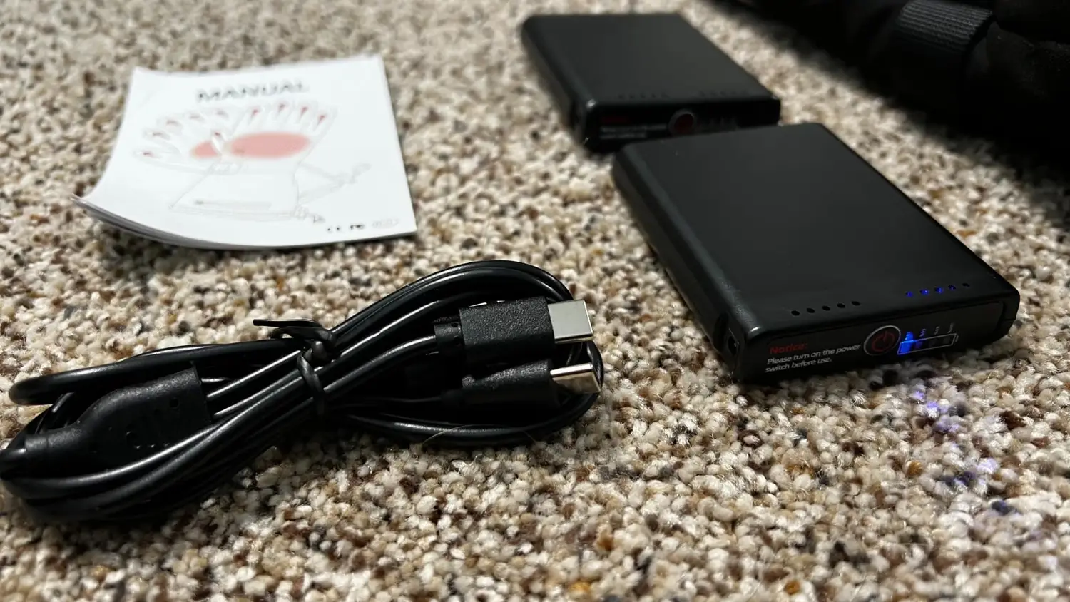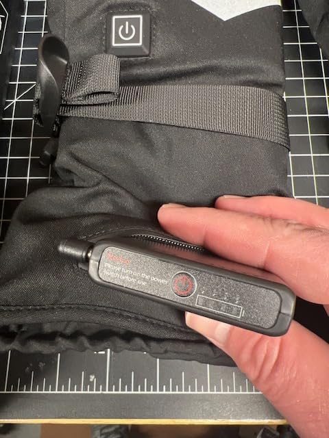 Connect the battery to the USB port located in the gloves's inner pocket. Then, press and hold the button for 3 seconds to activate. A short press will allow you to adjust between the different heat levels to achieve your desired warmth.